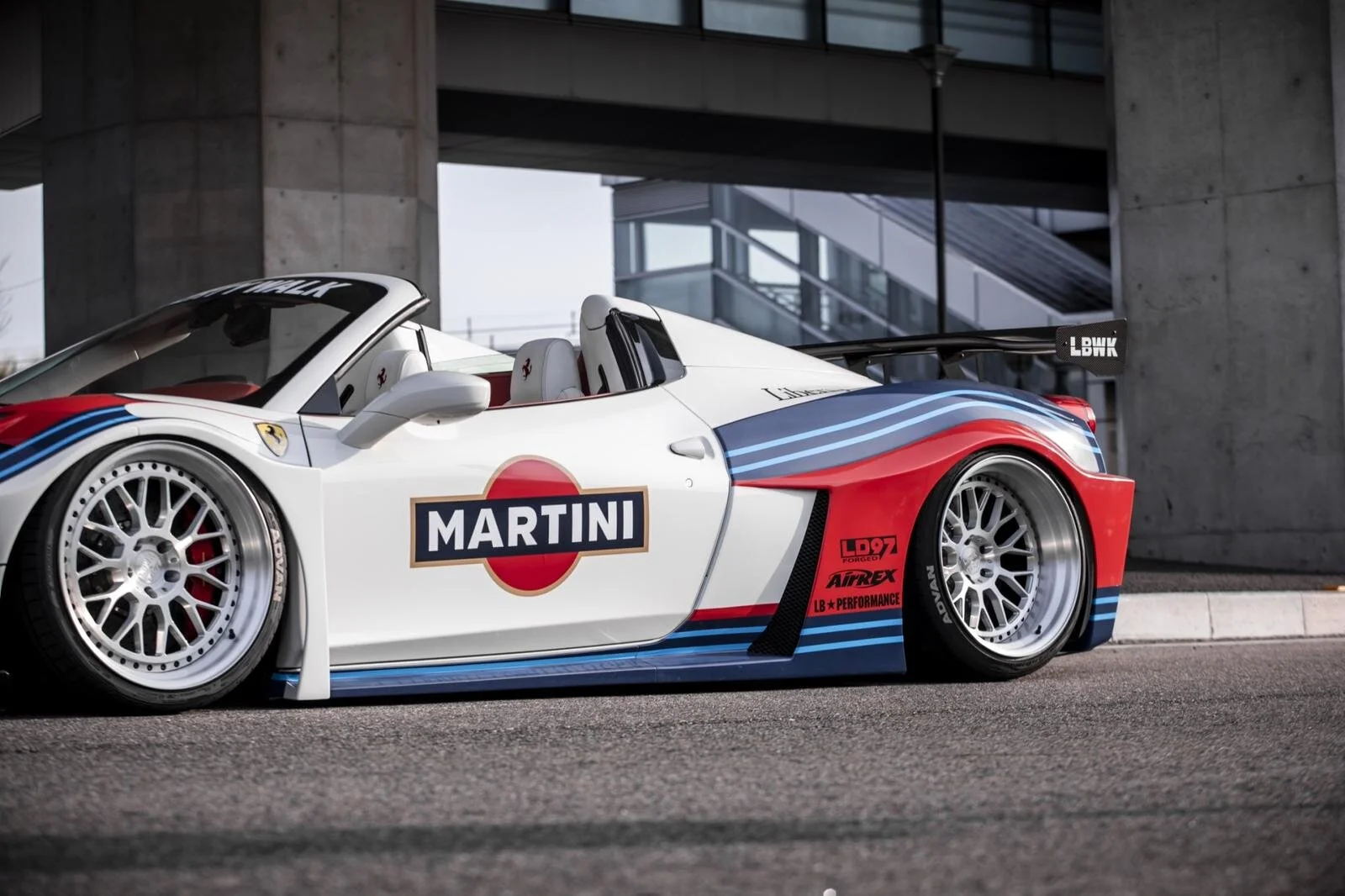 LIBERTY WALK LB SILHOUETTE WORKS FERRARI 458 SPIDER MARTINI 20X9/20X12.5 BRUSH CLEAR CENTER, BRUSH CLEAR LIP
